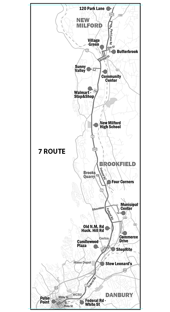 | Departs YMCA | ShopRite | KOHL'S & Big Y | Stew Leonard's | Osborne & Locust | Arrives Pulse Point |