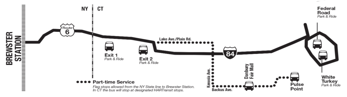 | Departs Southeast Station | New Fairfield Ball Pond Firehouse | Arrives New Fairfield Company A Firehouse |