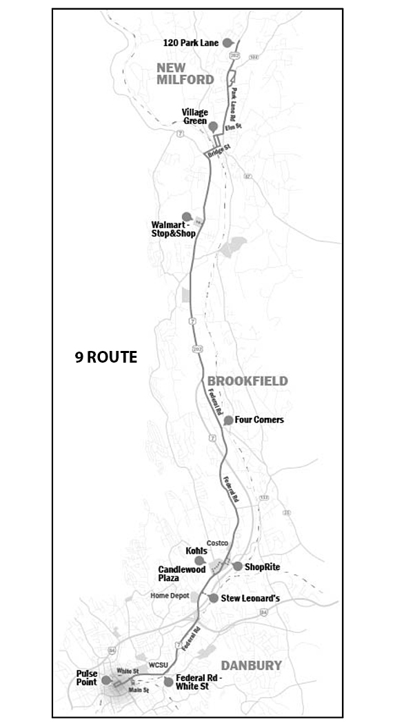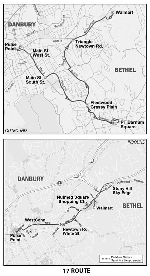 | Depart Pulse Point | Library | Main St - South St | Fleetwood - Grassy Plain South | PT. Barnum Square | Triangle/ Newtown | Arrive Berkshire SC |