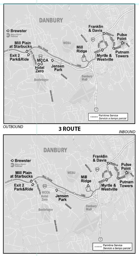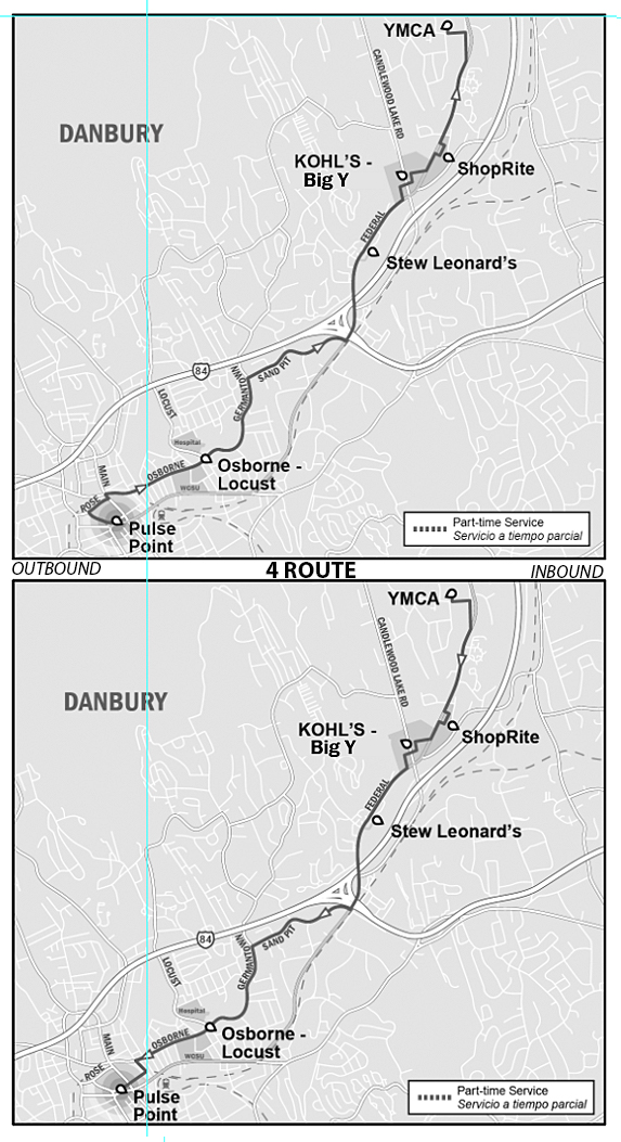 | Departs YMCA | ShopRite | KOHL'S & Big Y | Stew Leonard's | Osborne & Locust | Arrives Pulse Point |